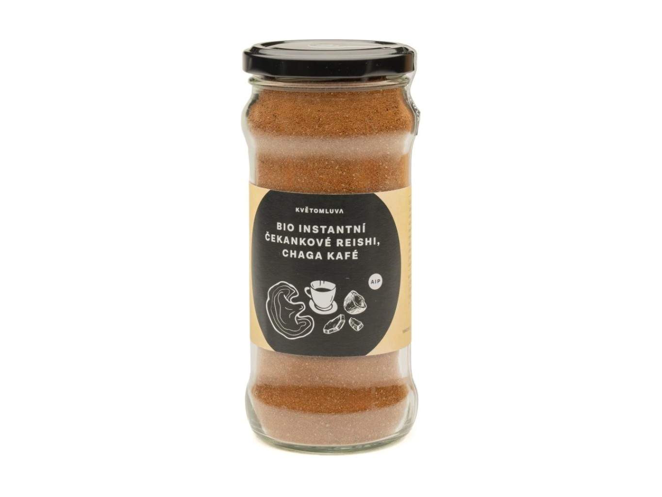 BIO instantná čakanková káva s Reishi a Chagou – lahodná, ľahko rozpustná kávovina z bio čakanky a vitálnych húb. AIP, vegán, bez lepku a cukru, ideálna pre každodenný pôžitok a pohodový štart dňa aj bez kofeínu.