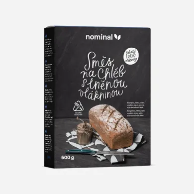 Popis: Nominal Zmes na chlieb s ľanovou vlákninou 500 g. Zmes je určená na jednoduchú prípravu bezlepkového chleba v domácich podmienkach. Vlhkosť a charakter strúhanky tejto zmesi pripomína chlieb s vyšším podielom raže. Jeho výživovú hodnotu zvyšuje obsah ľanovej múčky, ktorá je stále nedoceneným zdrojom prírodnej vlákniny. Zmes má prírodný charakter a je vhodná na prípravu v domácej pekárni alebo v bežnej peci. Môže sa použiť aj na pečenie menšieho pečiva (napr. dalamánkov).